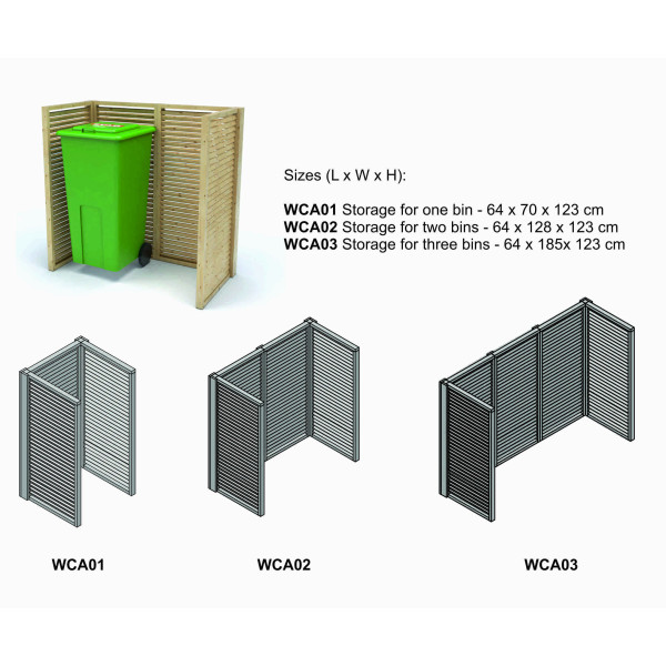 Garbage bins storage made from spruce wood. Possibility to storage one, two or three garbage bins.