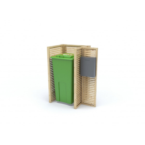 Garbage bins storage made from spruce wood. Possibility to storage one, two or three garbage bins.