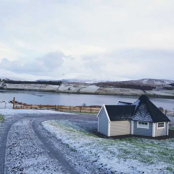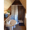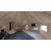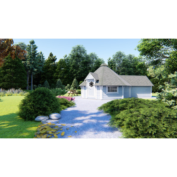 - Træhytten leveres på paller (L x W x H): 3.8 x 1.2 x 2.55 m. og 3.8 x 1.2 x 2.5 m.
