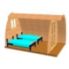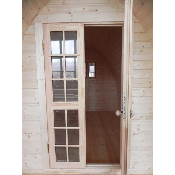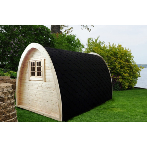 - Træhytten leveres på en palle (L x W x H): 4.1 m x 1.2 m x 1.25 m. Vægten er 1300 kg.